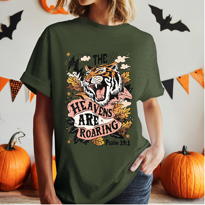 Direct To Garment printed on Threadfast unisex garment dyed tee in Fern.